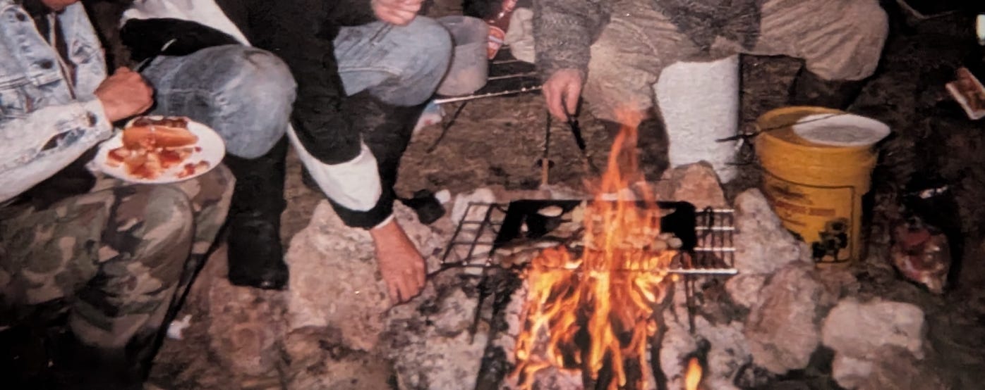Oh, the number of campfires that have shared the best and worst of life through the years. Makes you wonder if a piece of you, and the others, gets left or trapped in those fires. Since I was a young boy on the limestone banks of the river, fire has been an essential part of life. It gives light, heat, comfort, and attracts all sorts of people and bugs. I’m not sure which is worse.